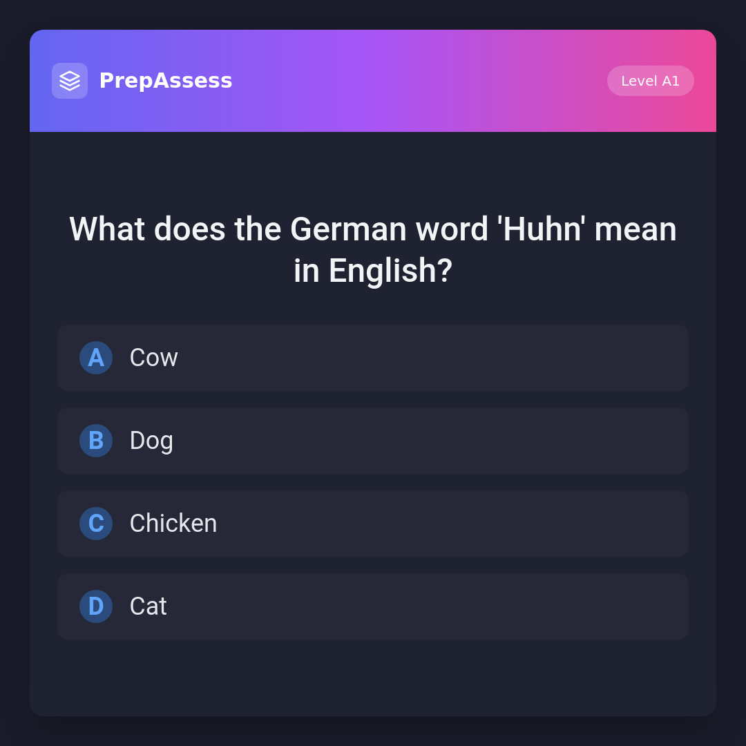 What does the German word 'Huhn' mean in English?