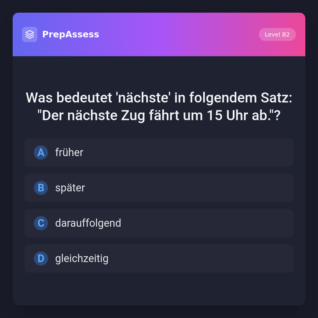 Was bedeutet 'nächste' in folgendem Satz: "Der nächste Zug fährt um 15 Uhr ab."?