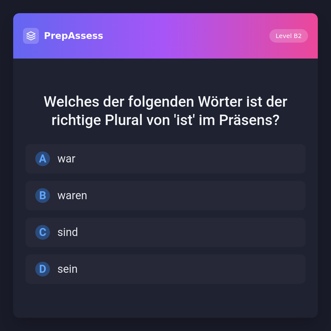 Welches der folgenden Wörter ist der richtige Plural von 'ist' im Präsens?