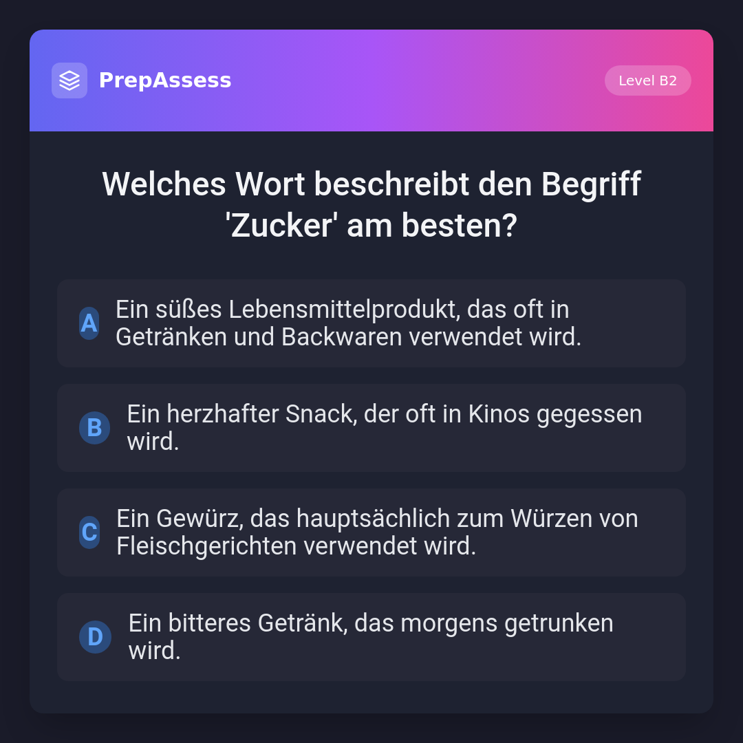 Welches Wort beschreibt den Begriff 'Zucker' am besten?