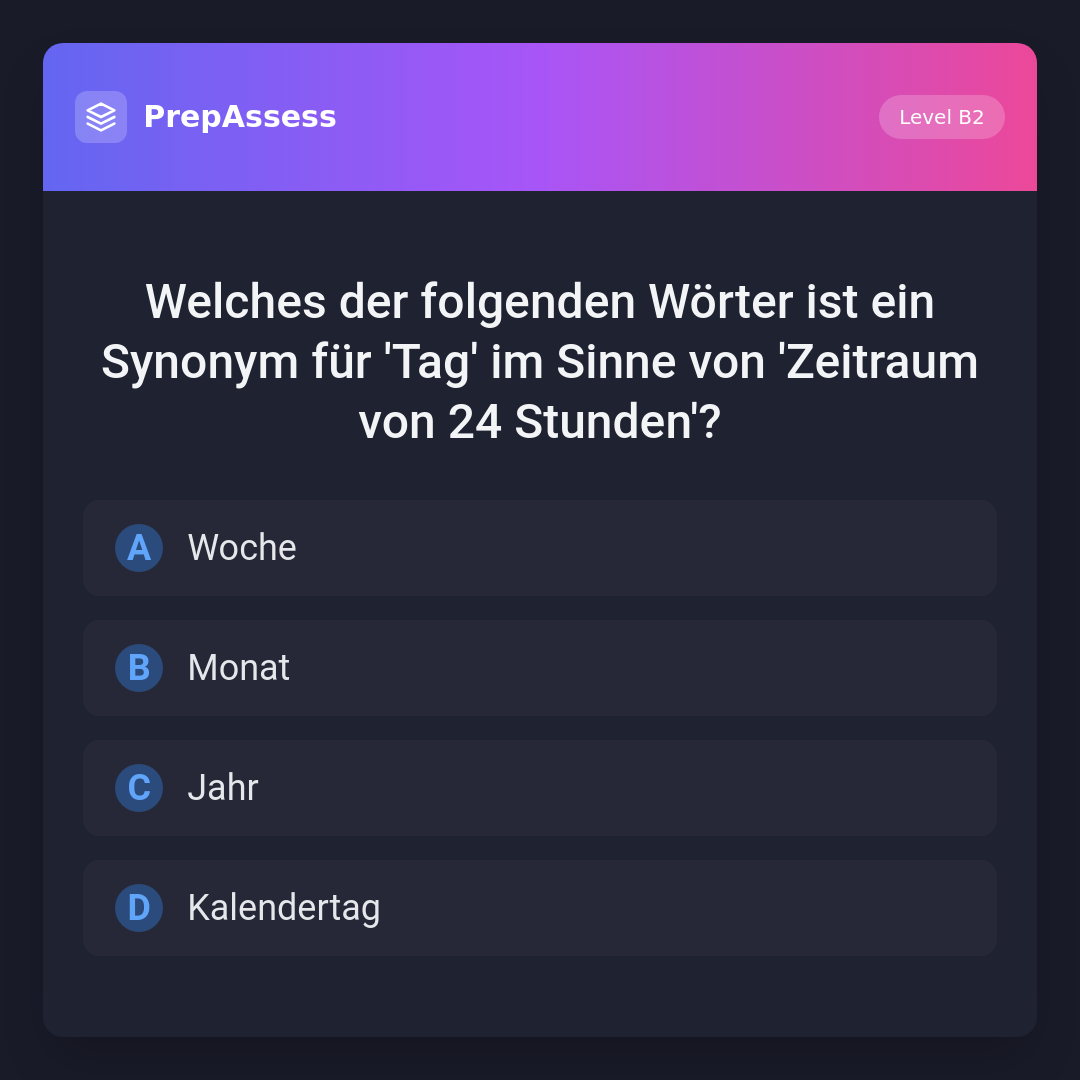 Welches der folgenden Wörter ist ein Synonym für 'Tag' im Sinne von 'Zeitraum von 24 Stunden'?
