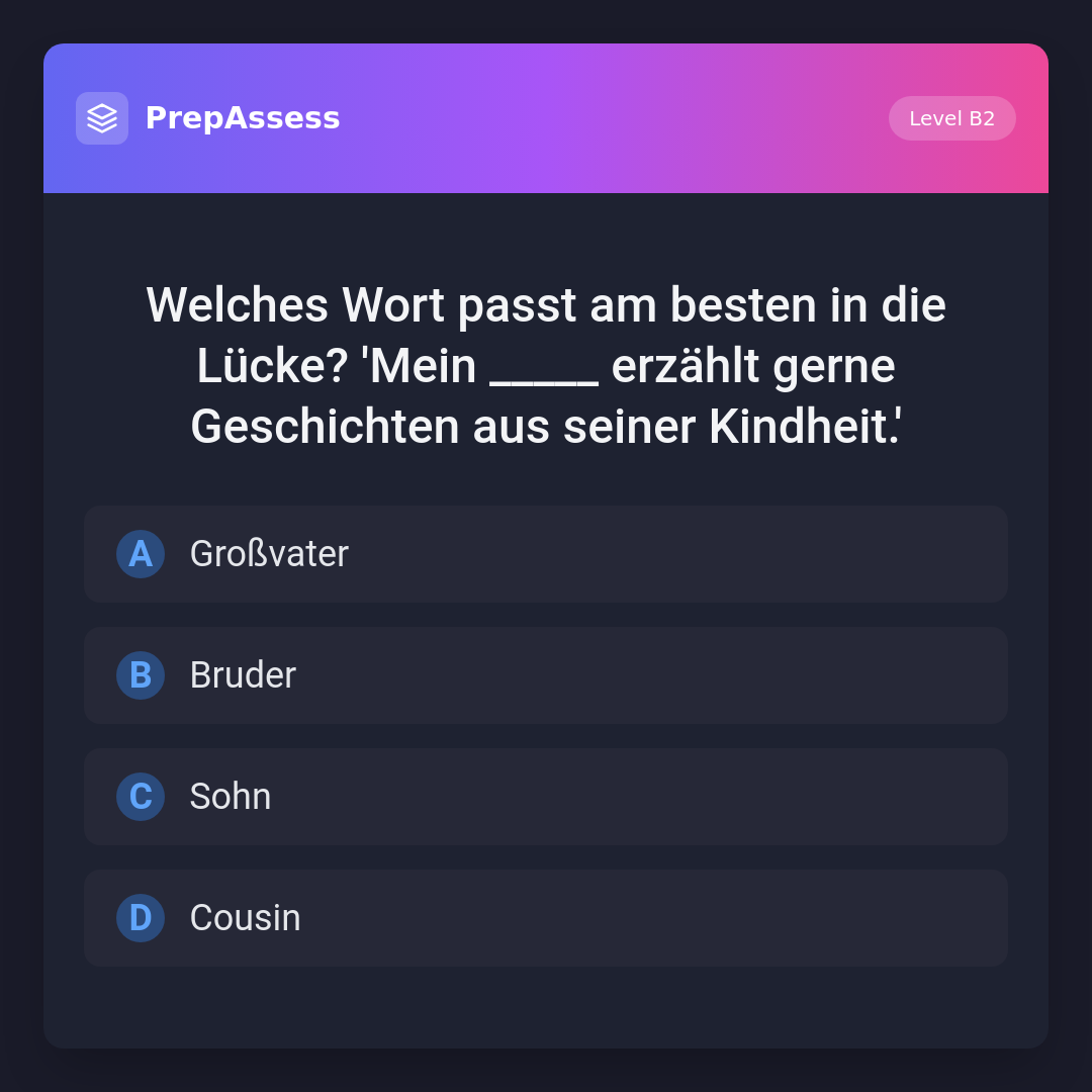 Welches Wort passt am besten in die Lücke? 'Mein _____ erzählt gerne Geschichten aus seiner Kindheit.'