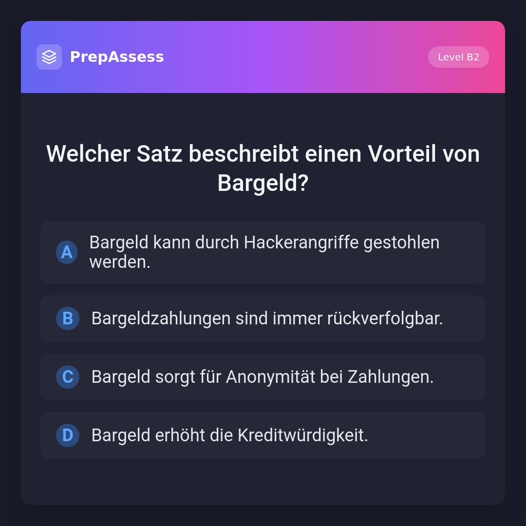 Welcher Satz beschreibt einen Vorteil von Bargeld?