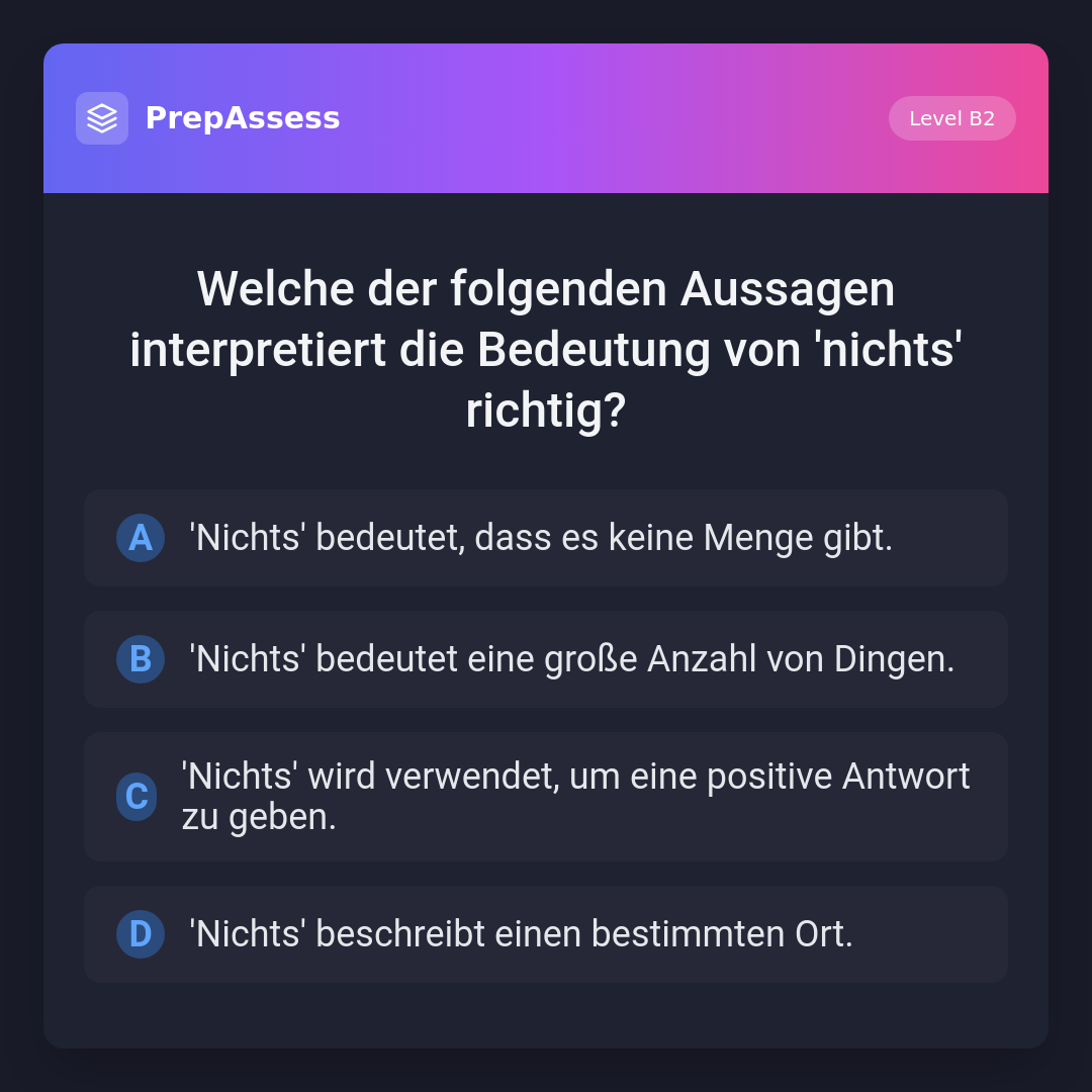 Welche der folgenden Aussagen interpretiert die Bedeutung von 'nichts' richtig?