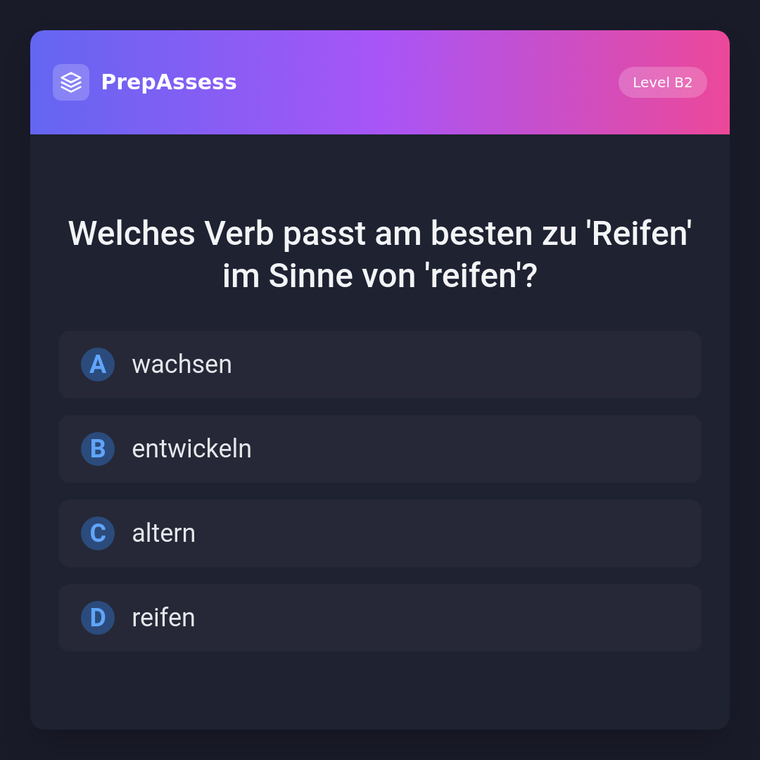 Welches Verb passt am besten zu 'Reifen' im Sinne von 'reifen'?