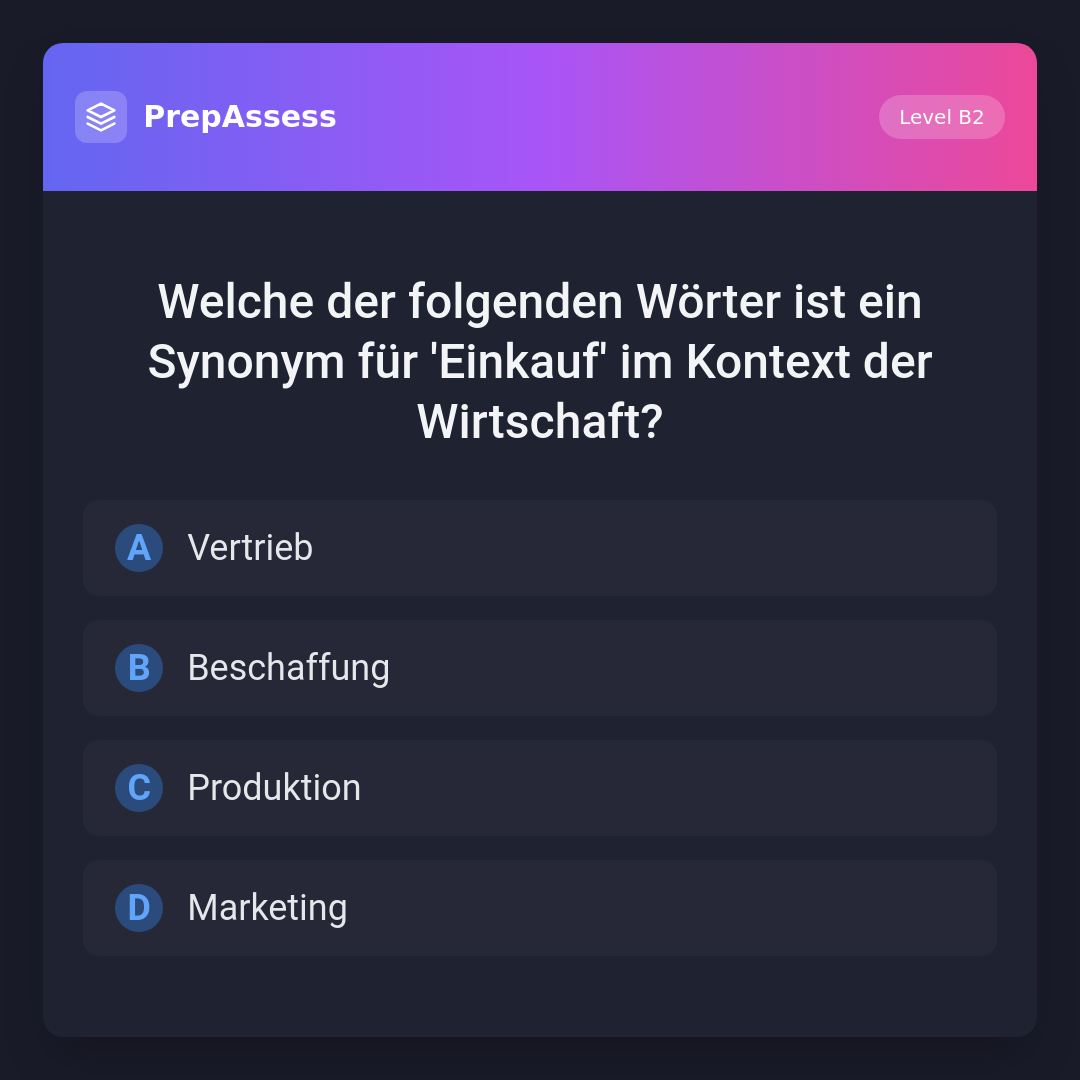 Welche der folgenden Wörter ist ein Synonym für 'Einkauf' im Kontext der Wirtschaft?