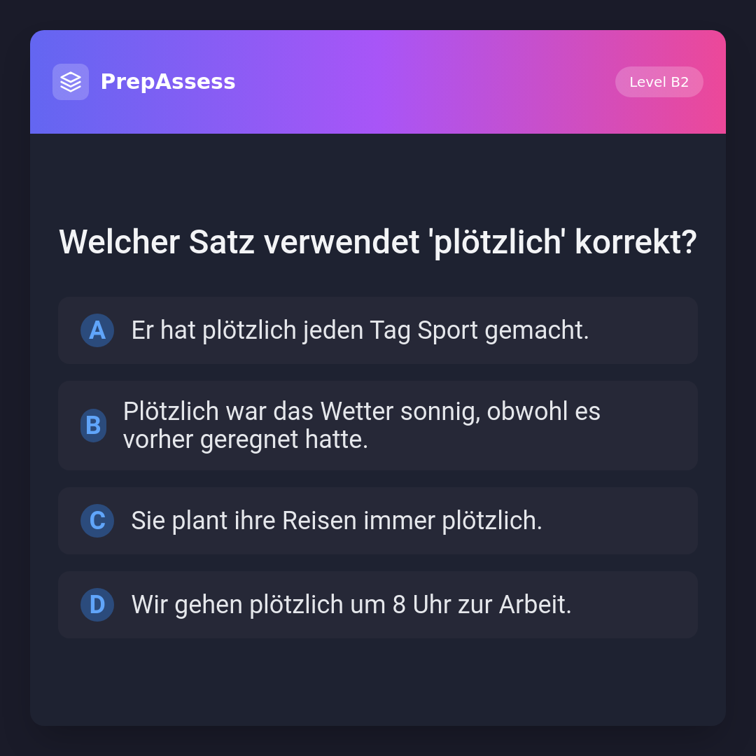 Welcher Satz verwendet 'plötzlich' korrekt?