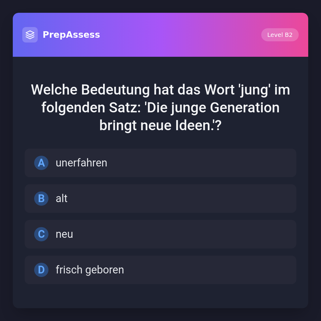 Welche Bedeutung hat das Wort 'jung' im folgenden Satz: 'Die junge Generation bringt neue Ideen.'?