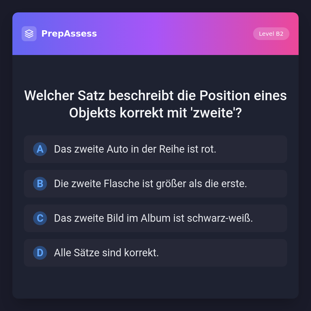 Welcher Satz beschreibt die Position eines Objekts korrekt mit 'zweite'?