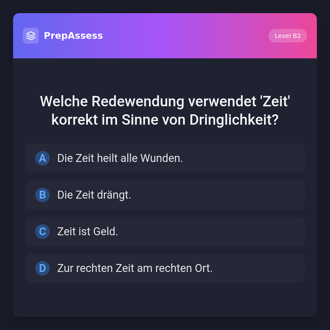 Welche Redewendung verwendet 'Zeit' korrekt im Sinne von Dringlichkeit?
