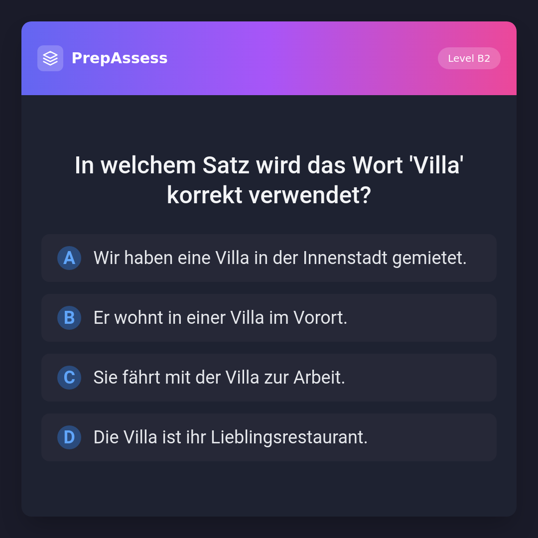 In welchem Satz wird das Wort 'Villa' korrekt verwendet?