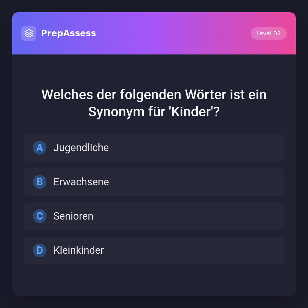 Welches der folgenden Wörter ist ein Synonym für 'Kinder'?