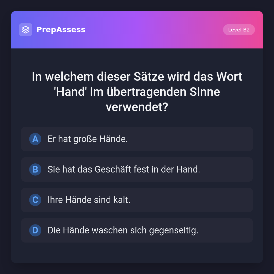 In welchem dieser Sätze wird das Wort 'Hand' im übertragenden Sinne verwendet?