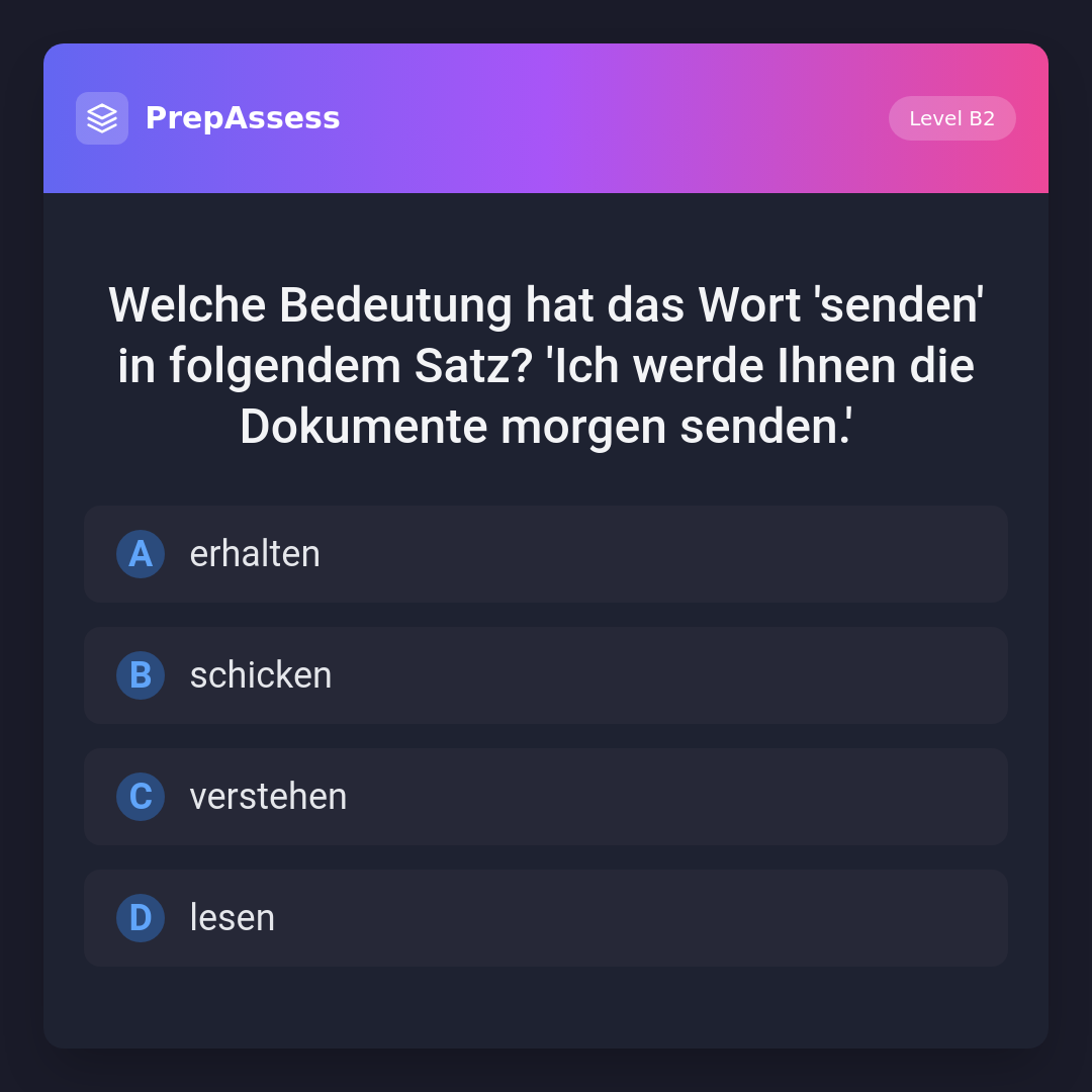 Welche Bedeutung hat das Wort 'senden' in folgendem Satz? 'Ich werde Ihnen die Dokumente morgen senden.'
