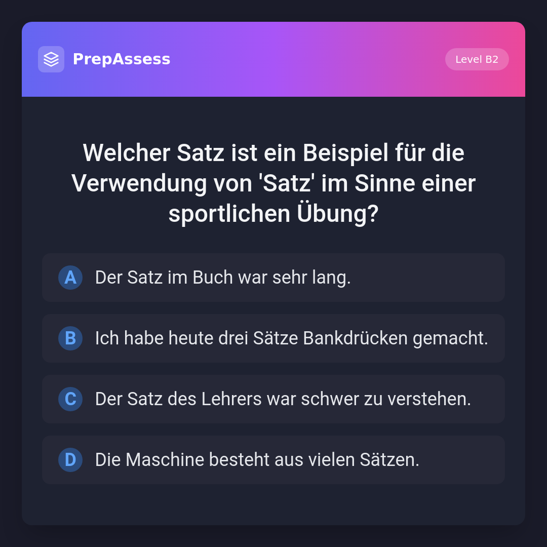 Welcher Satz ist ein Beispiel für die Verwendung von 'Satz' im Sinne einer sportlichen Übung?