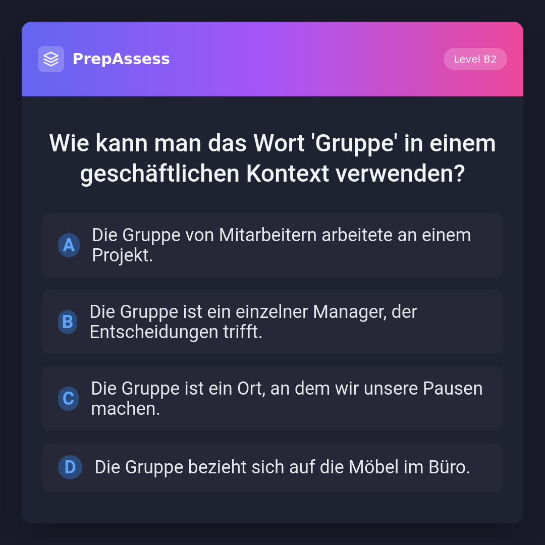 Wie kann man das Wort 'Gruppe' in einem geschäftlichen Kontext verwenden?
