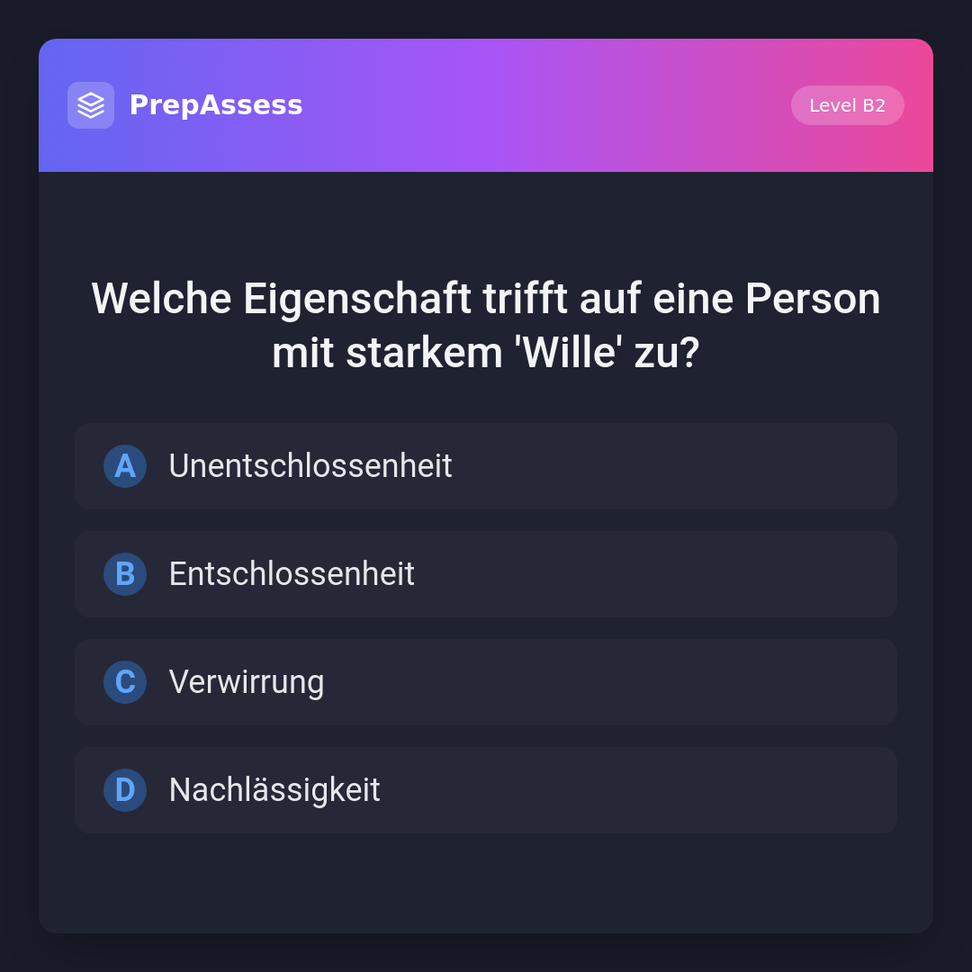 Welche Eigenschaft trifft auf eine Person mit starkem 'Wille' zu?