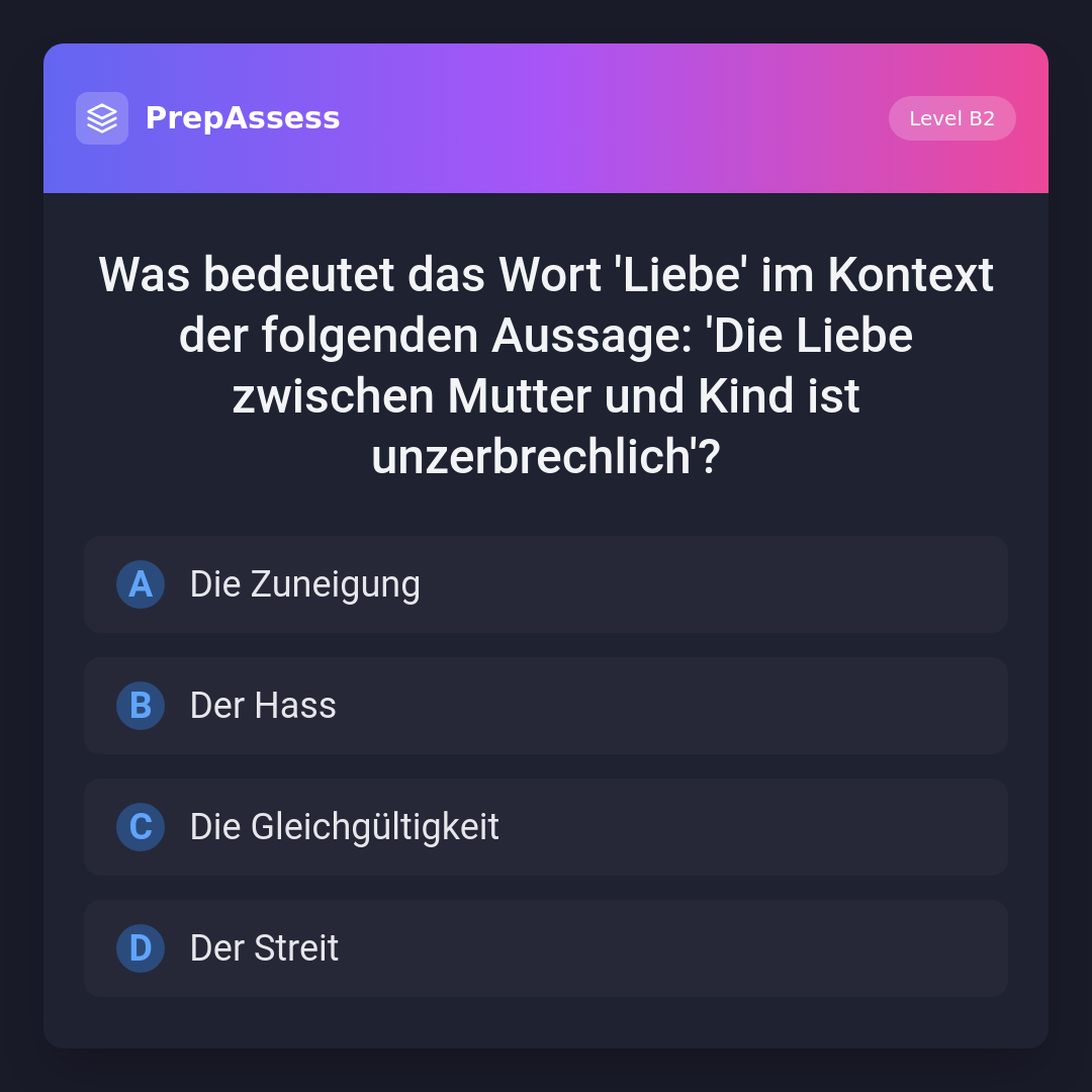 Was bedeutet das Wort 'Liebe' im Kontext der folgenden Aussage: 'Die Liebe zwischen Mutter und Kind ist unzerbrechlich'?