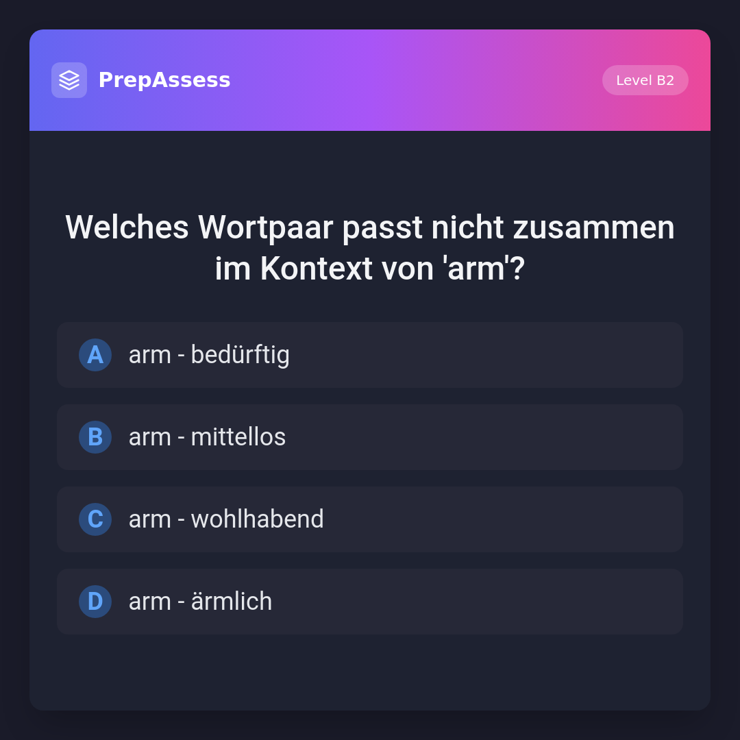 Welches Wortpaar passt nicht zusammen im Kontext von 'arm'?