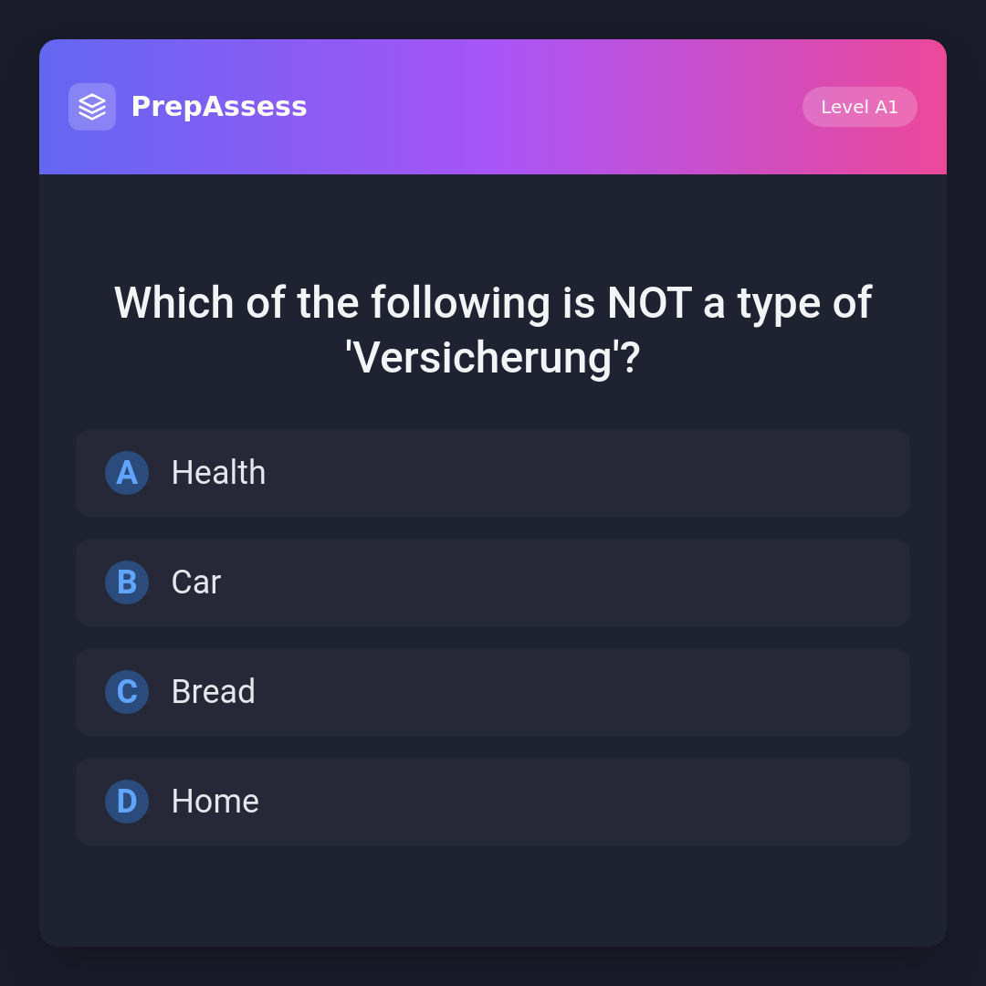 Which of the following is NOT a type of 'Versicherung'?