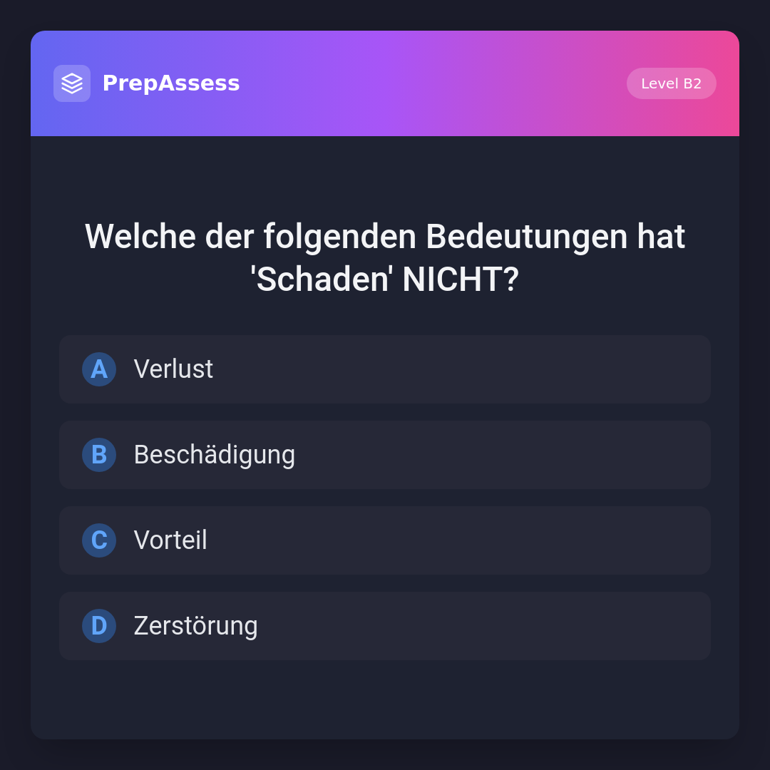 Welche der folgenden Bedeutungen hat 'Schaden' NICHT?