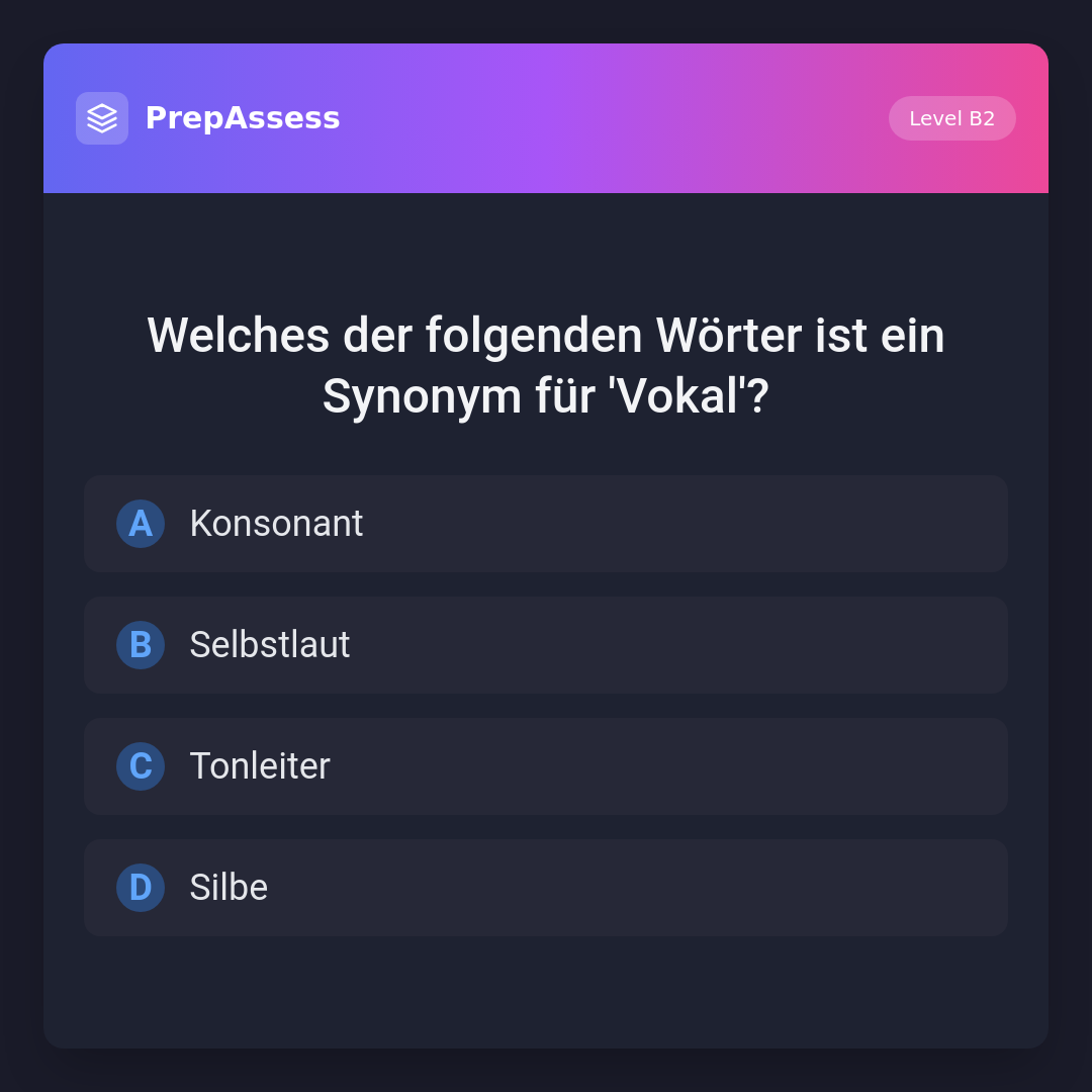 Welches der folgenden Wörter ist ein Synonym für 'Vokal'?