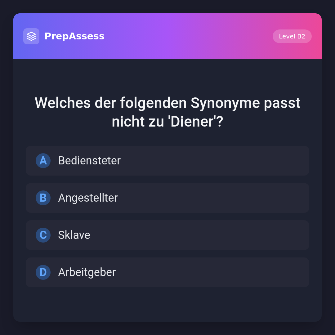 Welches der folgenden Synonyme passt nicht zu 'Diener'?
