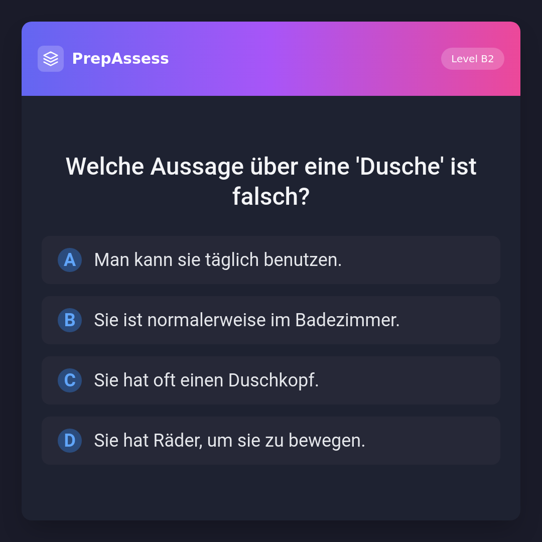Welche Aussage über eine 'Dusche' ist falsch?