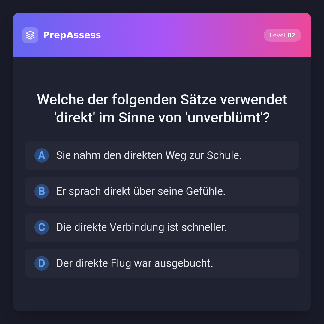 Welche der folgenden Sätze verwendet 'direkt' im Sinne von 'unverblümt'?