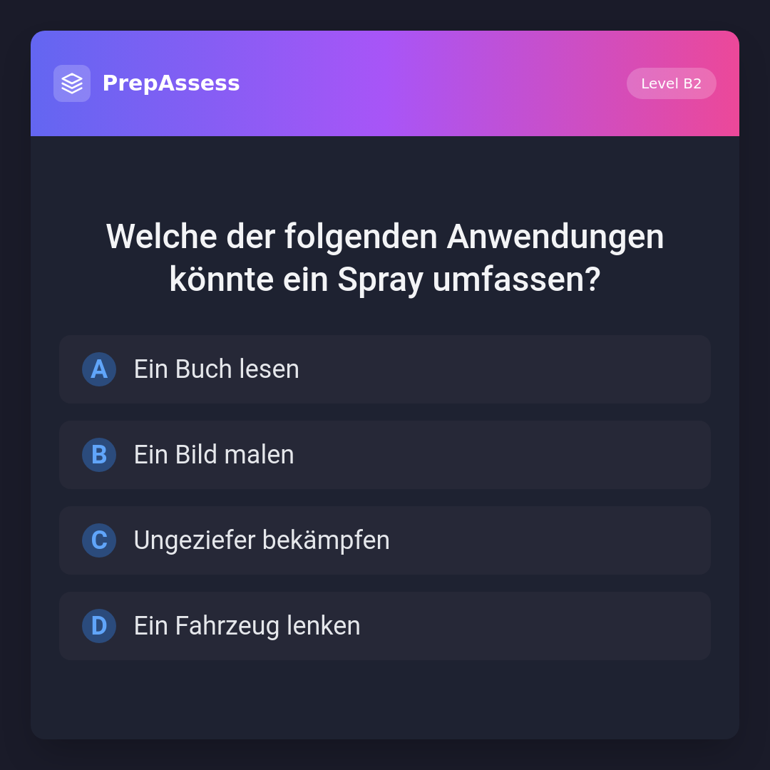 Welche der folgenden Anwendungen könnte ein Spray umfassen?