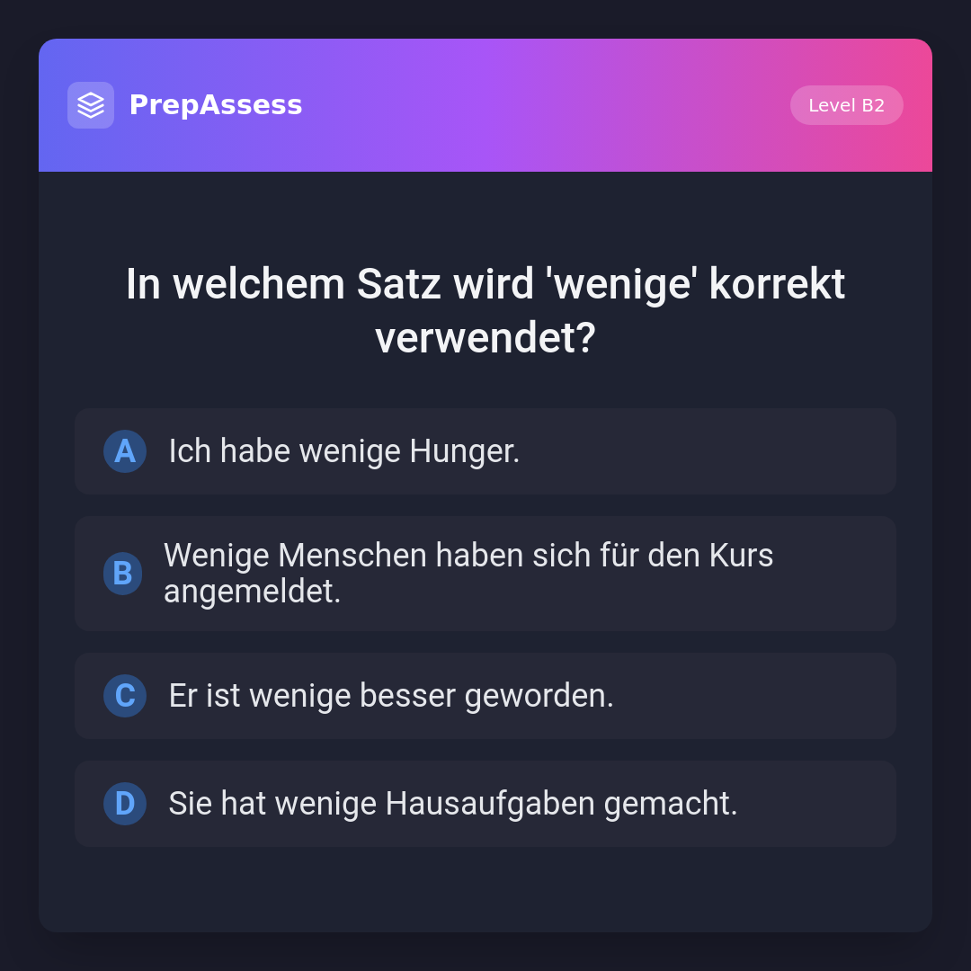 In welchem Satz wird 'wenige' korrekt verwendet?