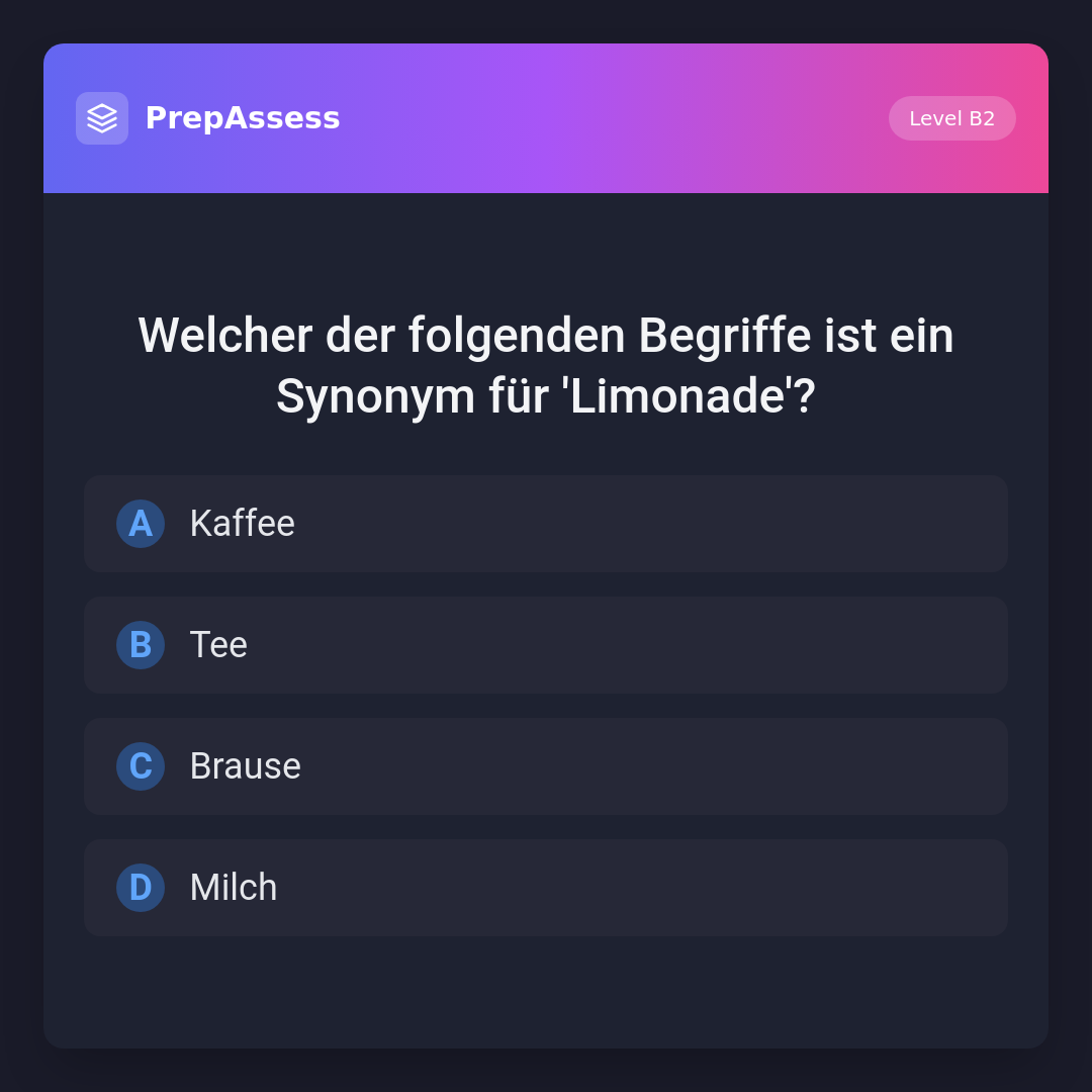 Welcher der folgenden Begriffe ist ein Synonym für 'Limonade'?
