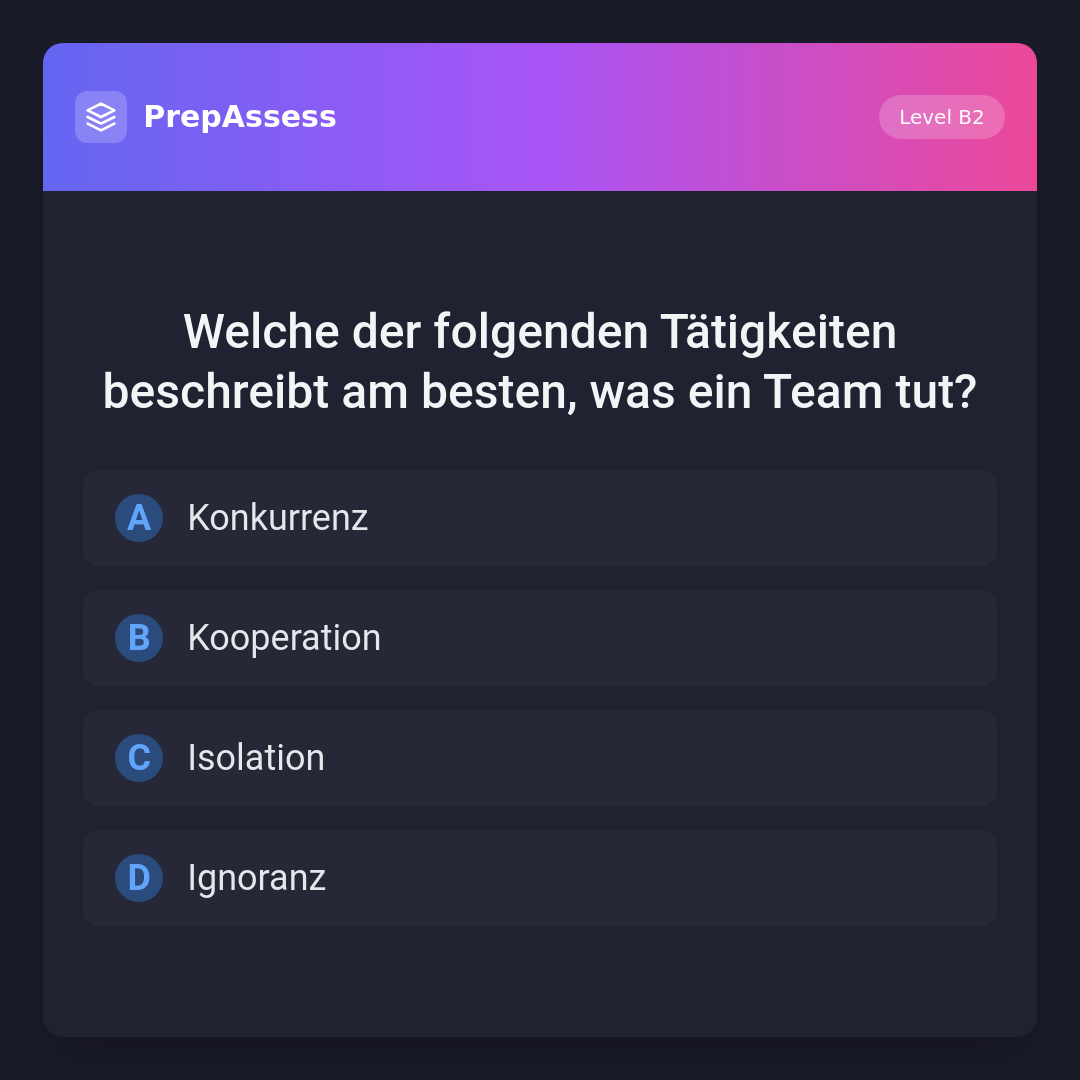Welche der folgenden Tätigkeiten beschreibt am besten, was ein Team tut?
