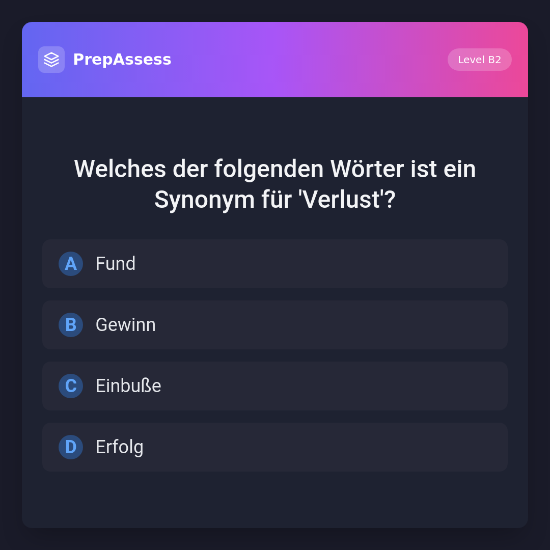 Welches der folgenden Wörter ist ein Synonym für 'Verlust'?