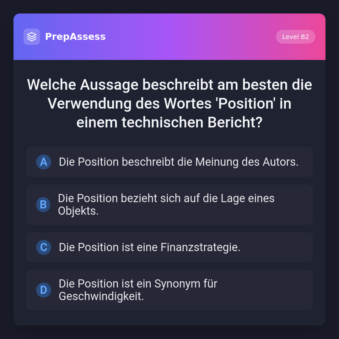 Welche Aussage beschreibt am besten die Verwendung des Wortes 'Position' in einem technischen Bericht?