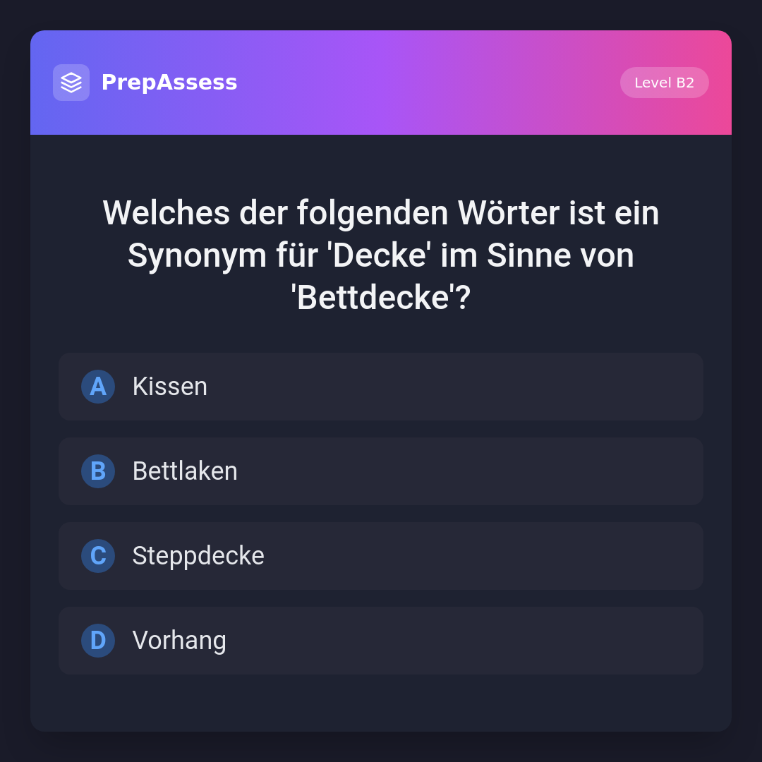 Welches der folgenden Wörter ist ein Synonym für 'Decke' im Sinne von 'Bettdecke'?
