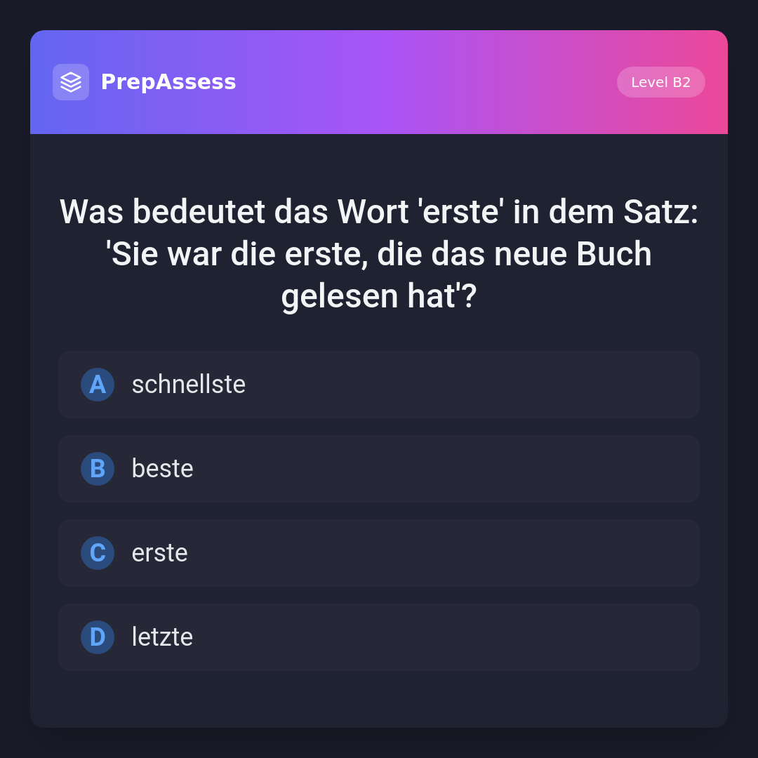 Was bedeutet das Wort 'erste' in dem Satz: 'Sie war die erste, die das neue Buch gelesen hat'?
