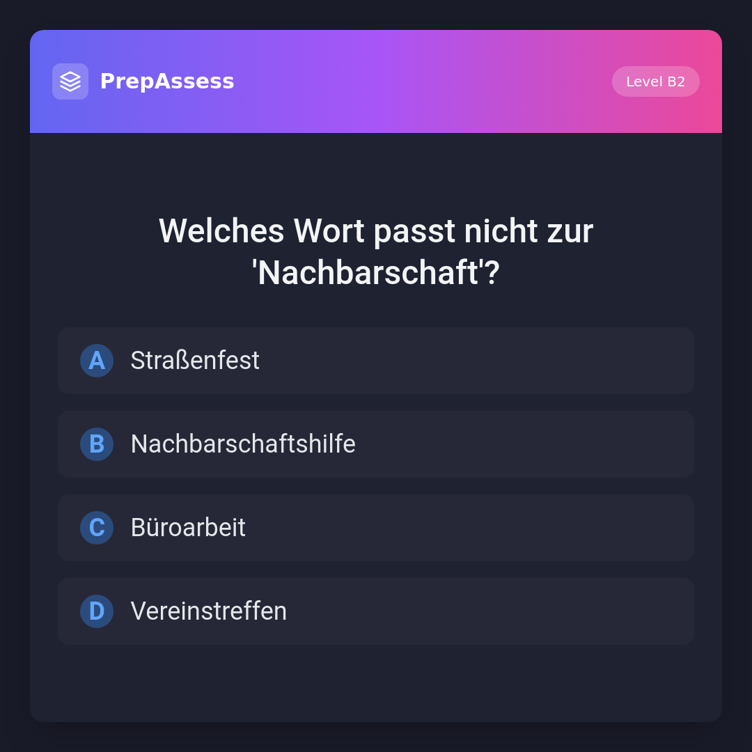 Welches Wort passt nicht zur 'Nachbarschaft'?