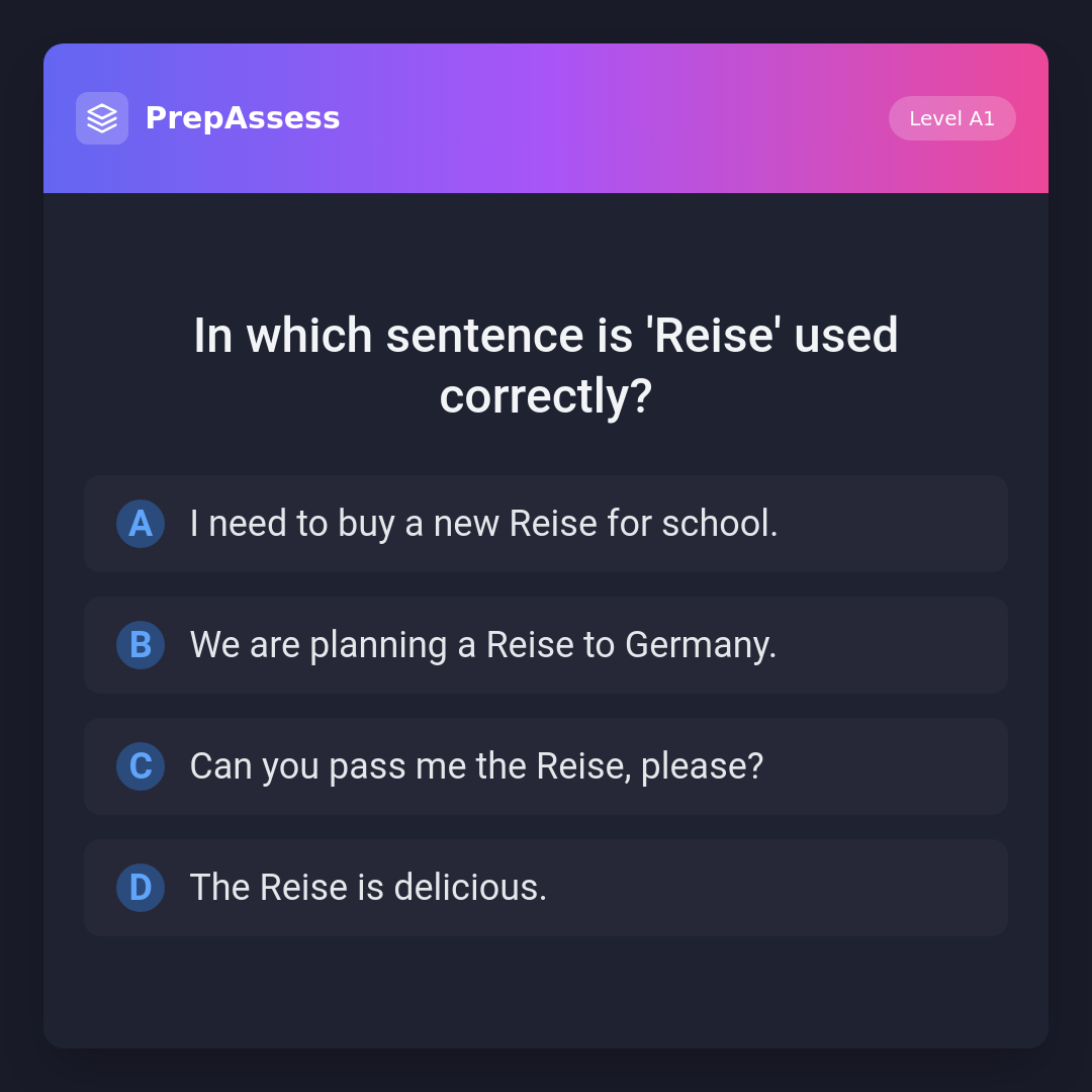 In which sentence is 'Reise' used correctly?