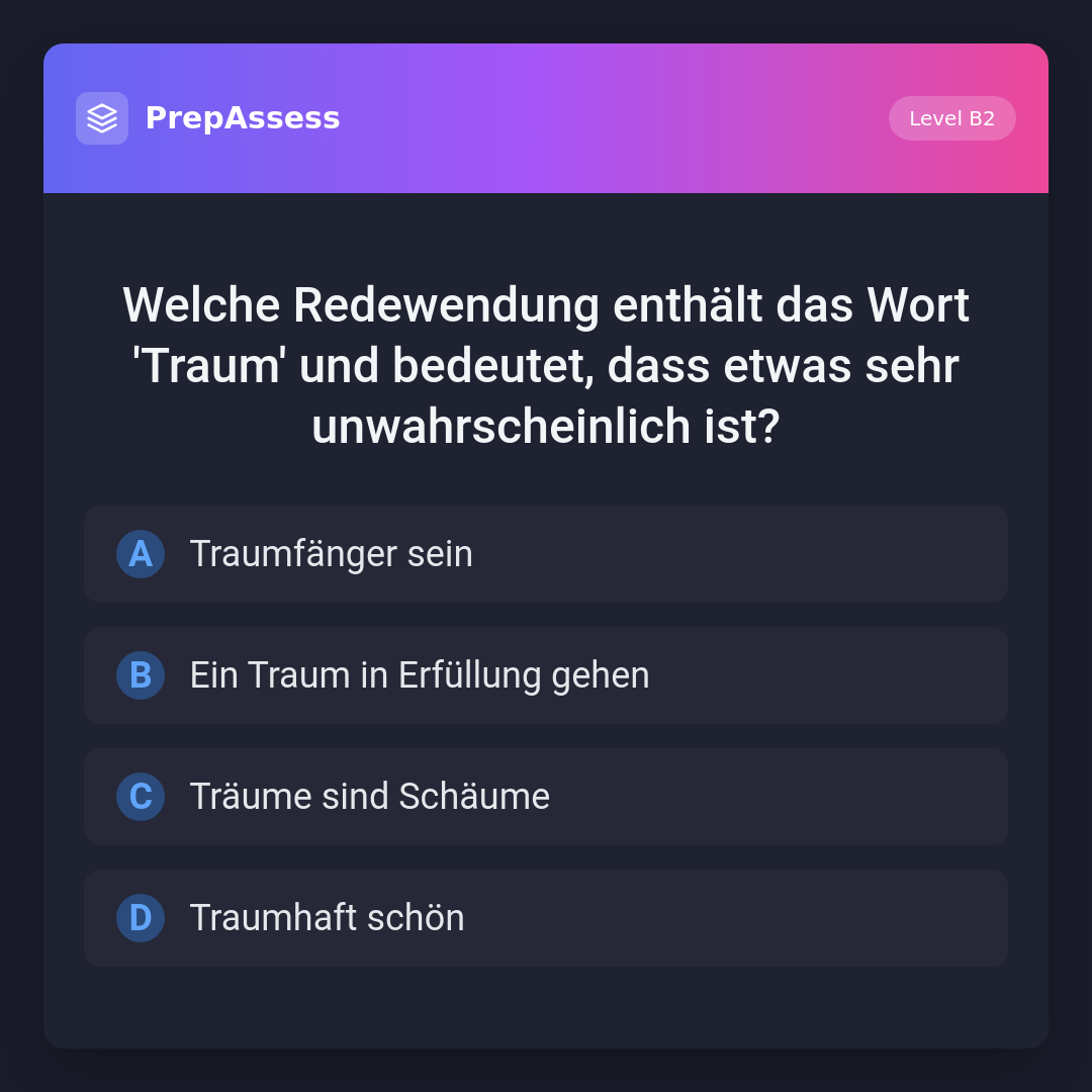 Welche Redewendung enthält das Wort 'Traum' und bedeutet, dass etwas sehr unwahrscheinlich ist?
