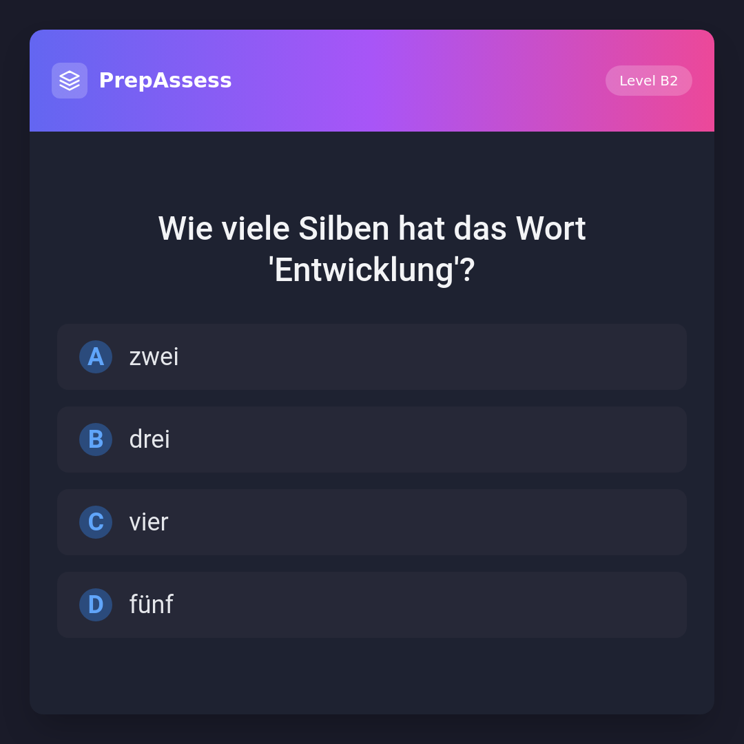 Wie viele Silben hat das Wort 'Entwicklung'?