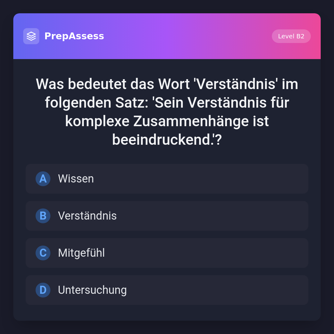 Was bedeutet das Wort 'Verständnis' im folgenden Satz: 'Sein Verständnis für komplexe Zusammenhänge ist beeindruckend.'?