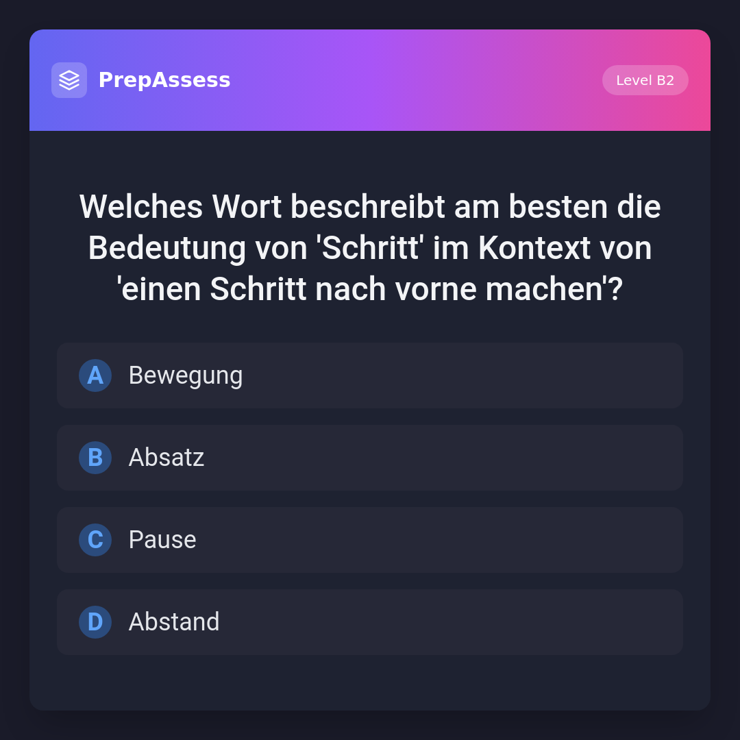 Welches Wort beschreibt am besten die Bedeutung von 'Schritt' im Kontext von 'einen Schritt nach vorne machen'?