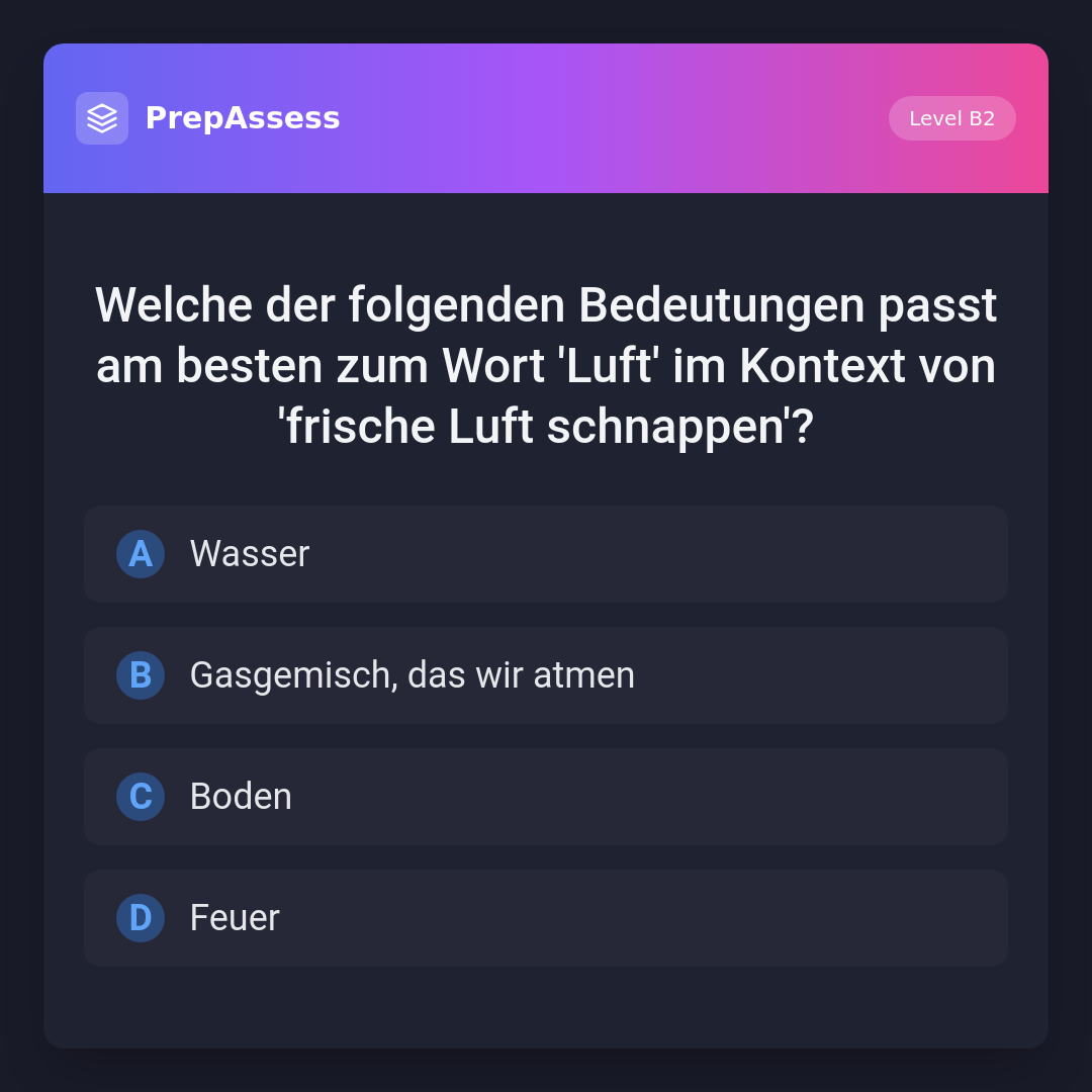 Welche der folgenden Bedeutungen passt am besten zum Wort 'Luft' im Kontext von 'frische Luft schnappen'?