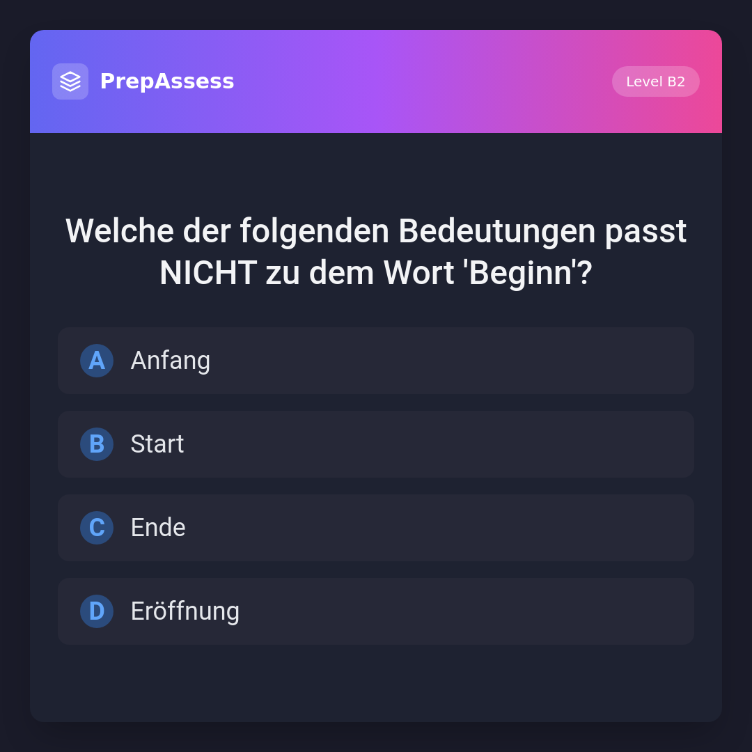Welche der folgenden Bedeutungen passt NICHT zu dem Wort 'Beginn'?