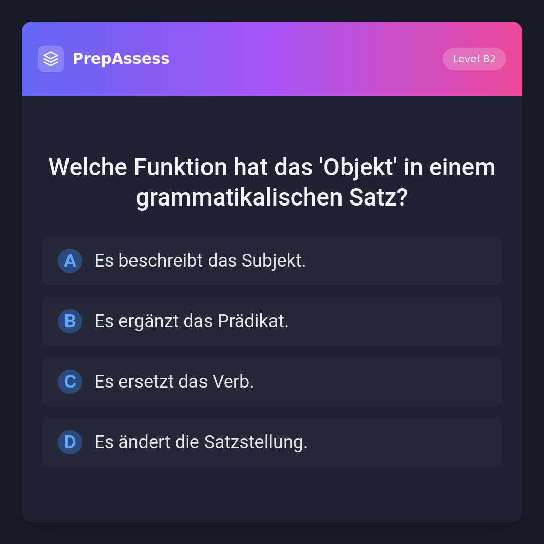 Welche Funktion hat das 'Objekt' in einem grammatikalischen Satz?