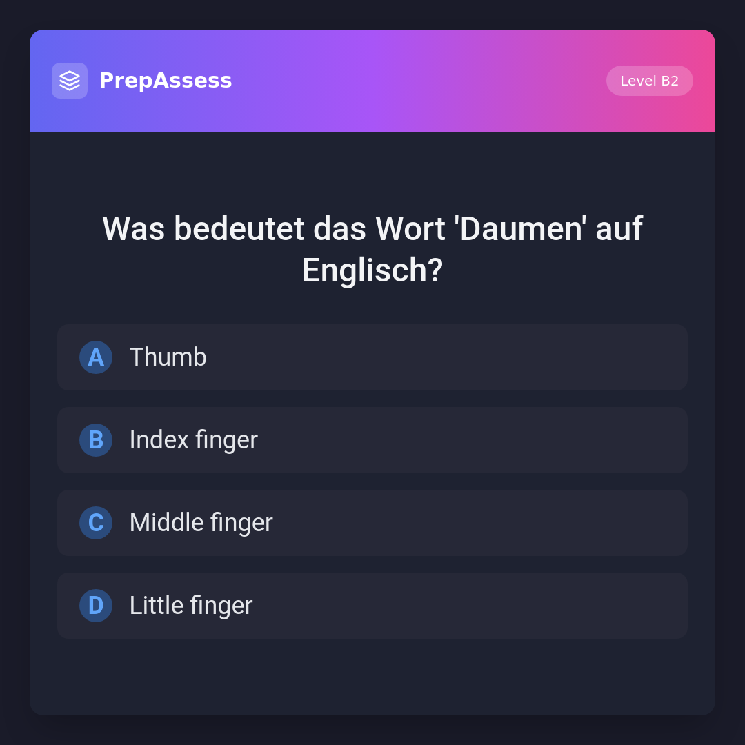 Was bedeutet das Wort 'Daumen' auf Englisch?