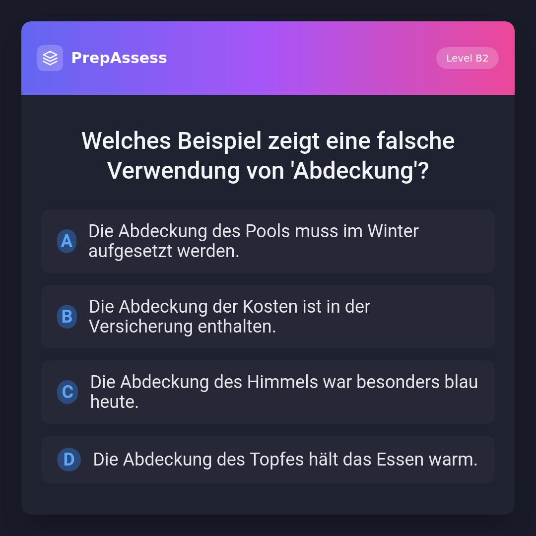 Welches Beispiel zeigt eine falsche Verwendung von 'Abdeckung'?