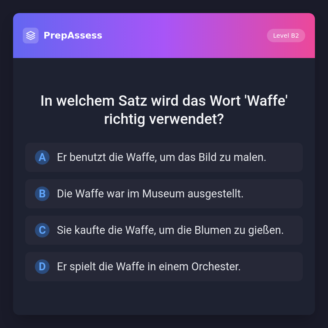 In welchem Satz wird das Wort 'Waffe' richtig verwendet?