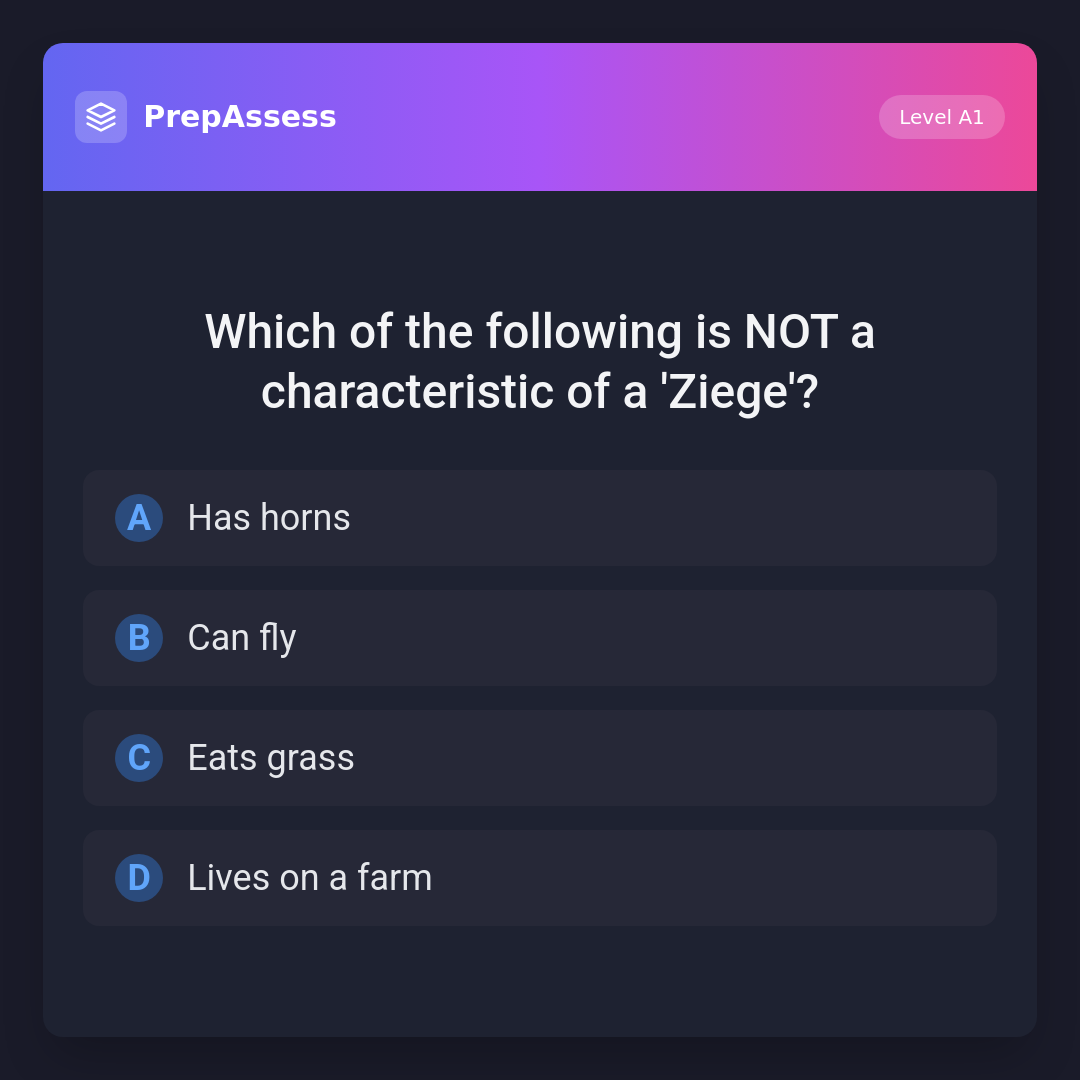 Which of the following is NOT a characteristic of a 'Ziege'?